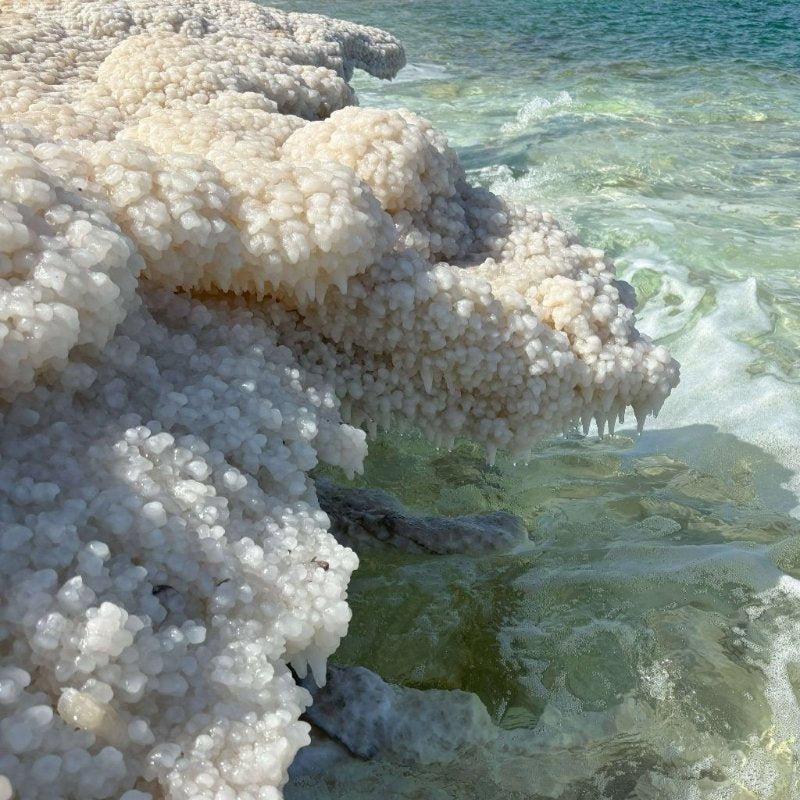 Das naturreine Salz des Toten Meeres ist reich an essenziellen Mineralien wie Magnesium, Kalzium und Kalium. Diese Mineralien besitzen reinigende und entzündungshemmende Eigenschaften, die die Haut auf sanfte Weise exfolieren und die Durchblutung fördern.